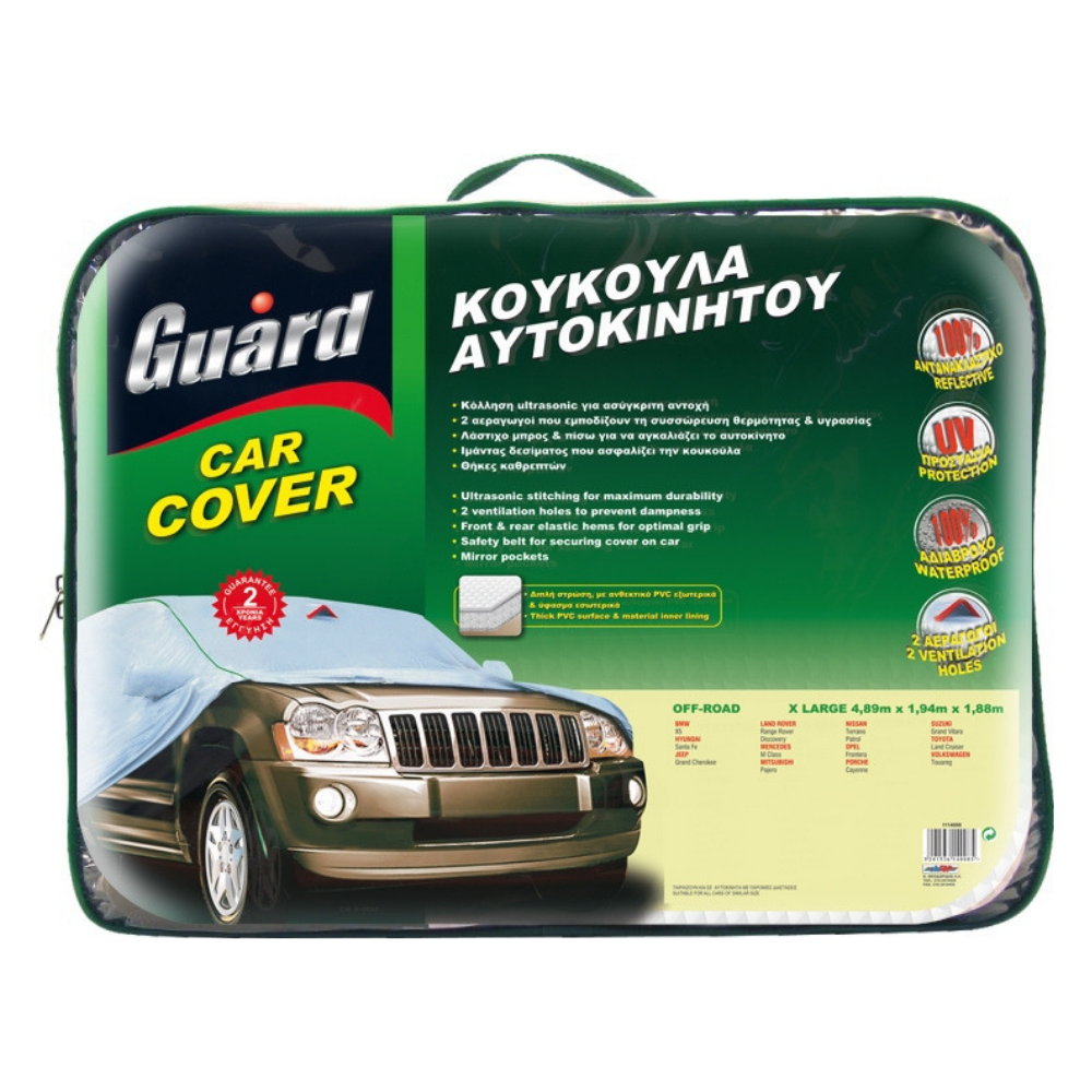 Κουκούλα αυτοκινήτου Guard Car Cover, υψηλής ποιότητας και αντοχής για μοντέλα Jeep/SUV σε μέγεθος Large. Η συσκευασία περιλαμβάνει 1 τεμάχιο.